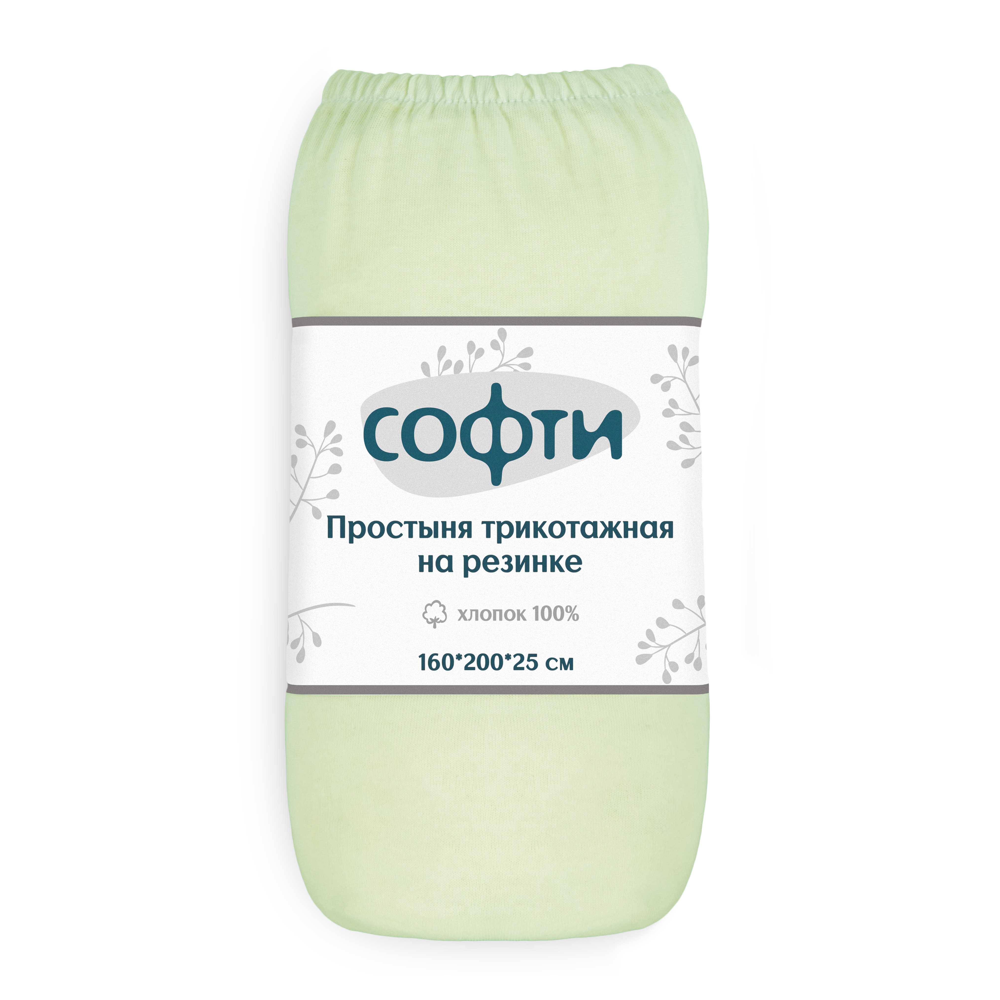 Простыня трикотажная на резинке 160х200х25см СОФТИ с бурлетами 25см упаковка-ролик плотность 120гр/м2 светло-зеленая хлопок 100%