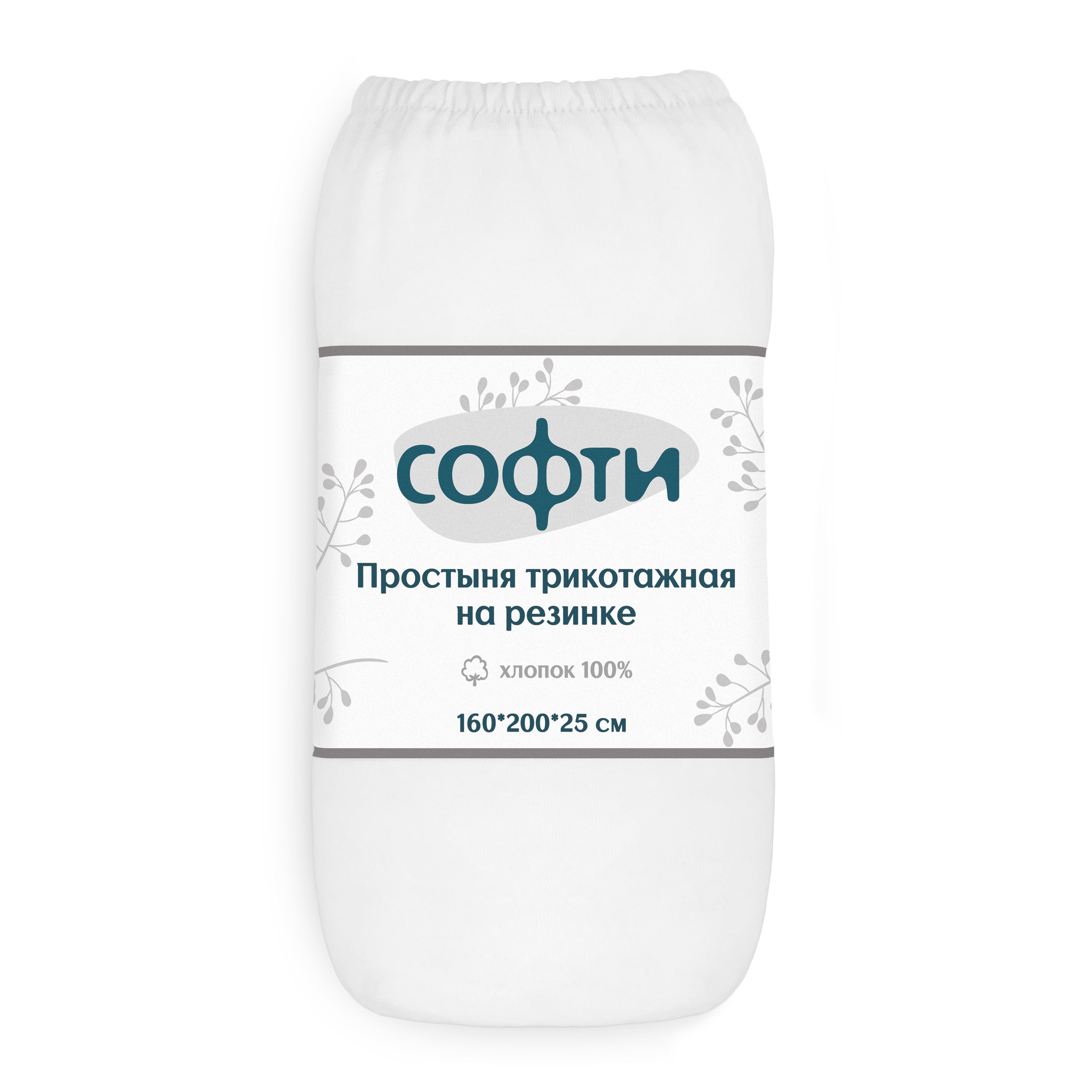 Простыня трикотажная на резинке 160х200х25см СОФТИ белая хлопок 100%