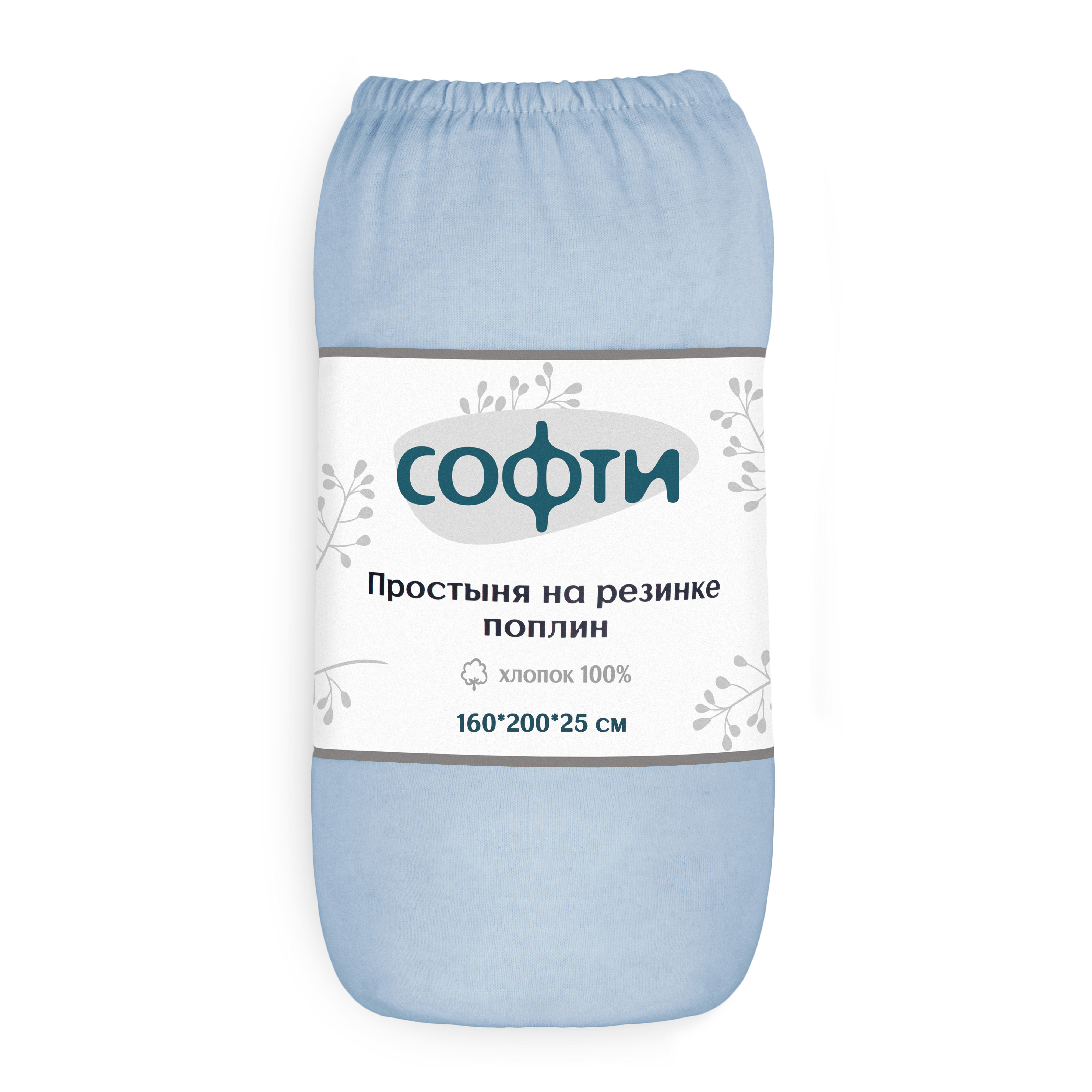 Простыня на резинке 160х200х25см СОФТИ с бурлетами 25см упаковка-ролик серо-голубая поплин хлопок 100%