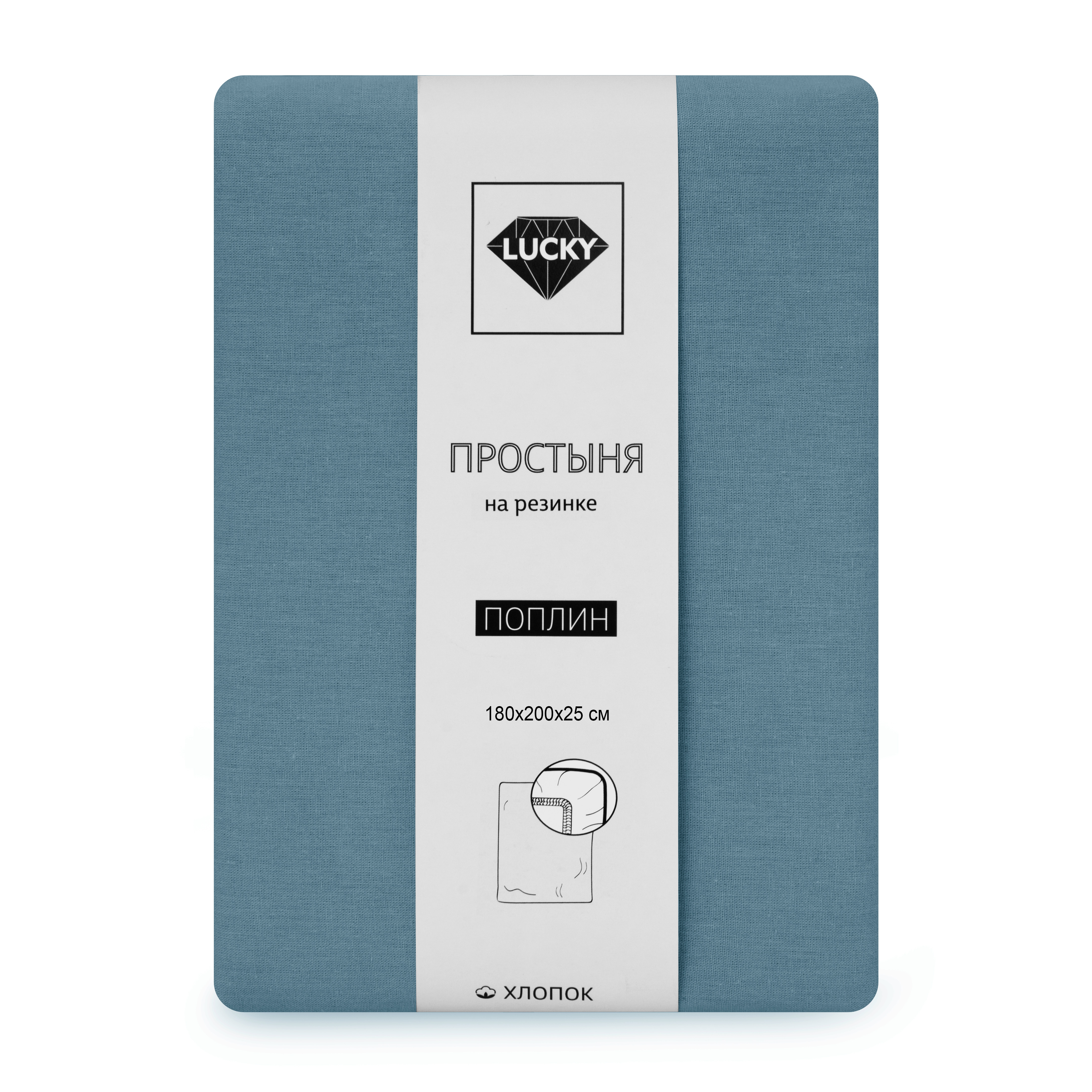 Простыня на резинке 180х200х25см LUCKY светло-синяя поплин хлопок 100%