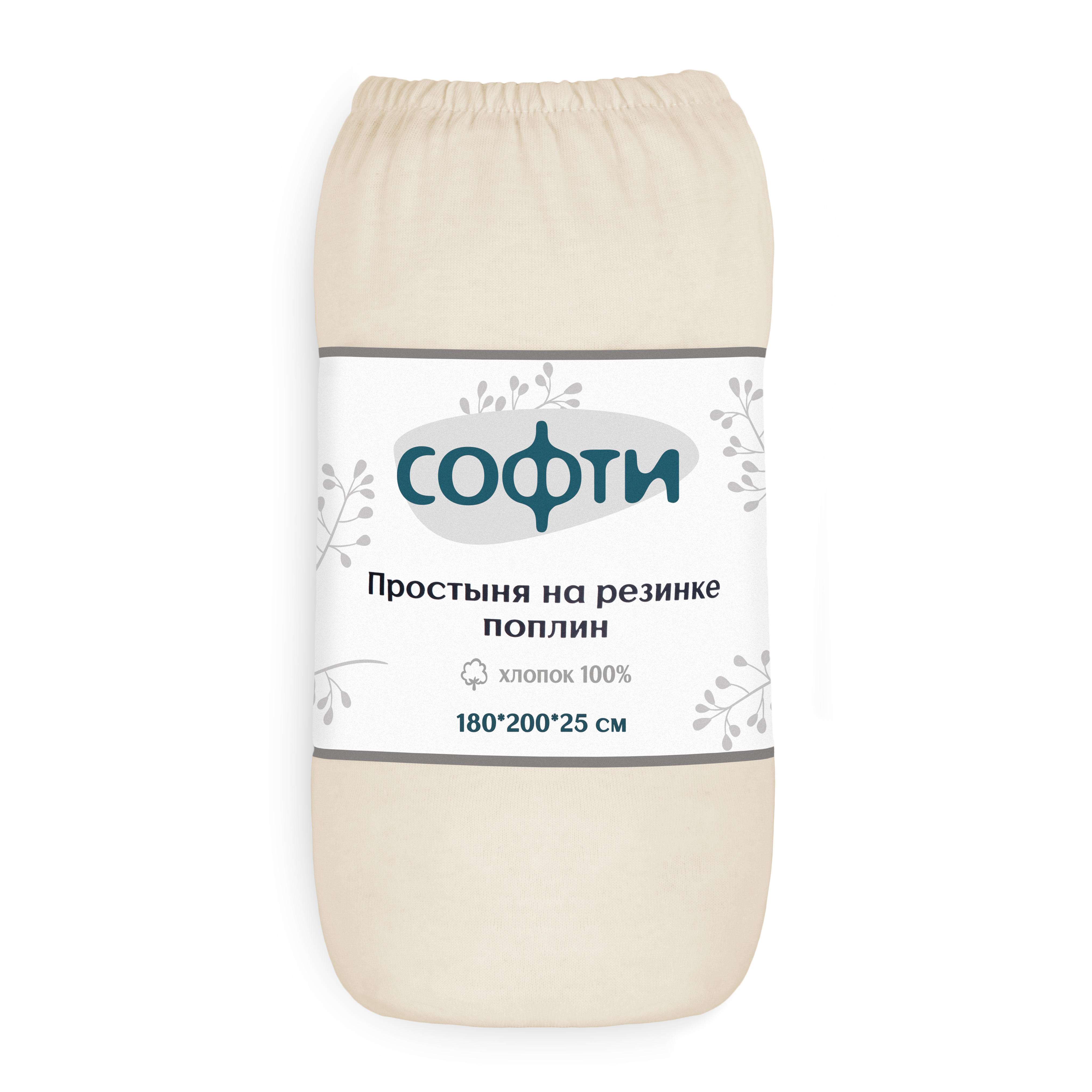 Простыня на резинке 180х200х25см СОФТИ с бурлетами 25см упаковка-ролик светло-бежевая поплин хлопок 100%