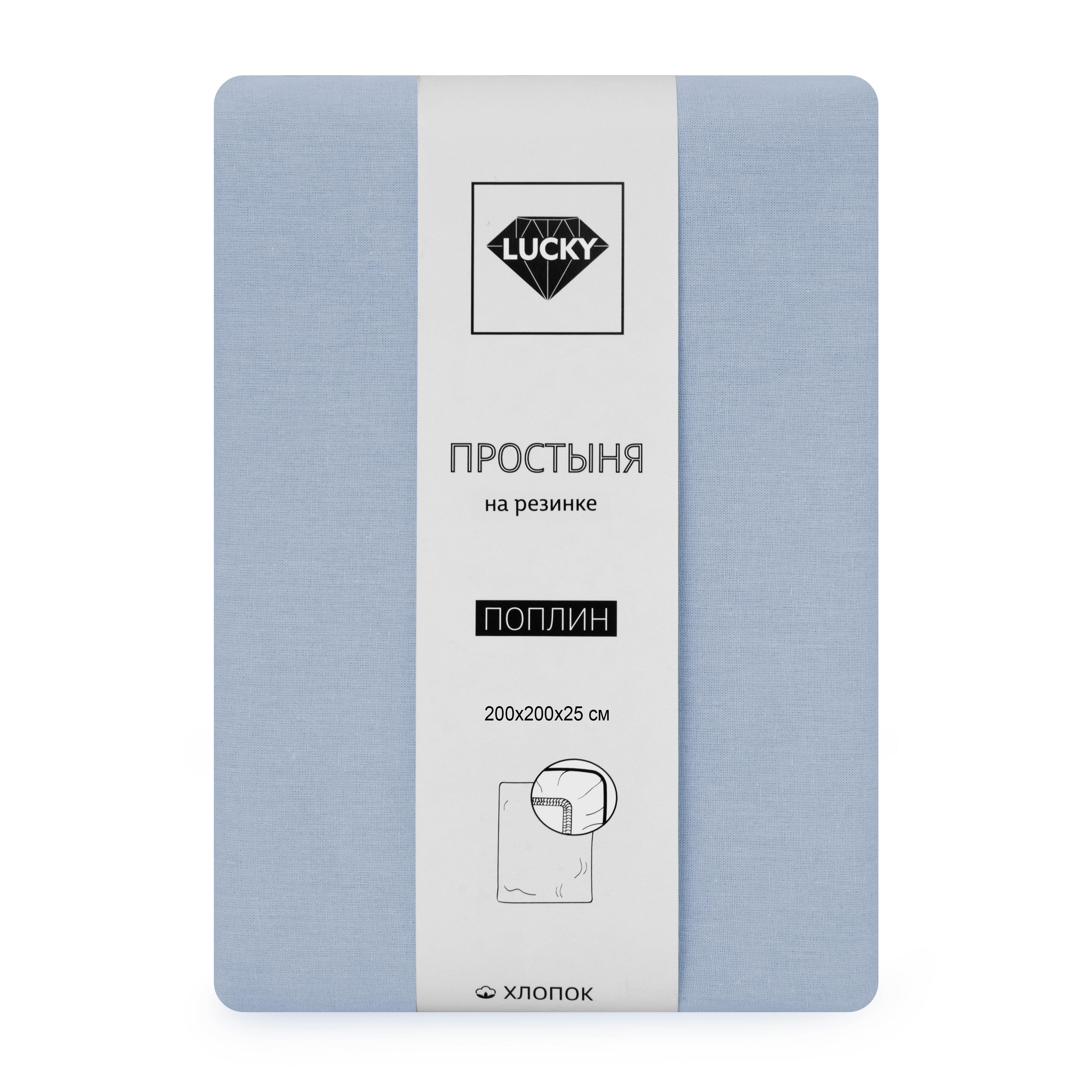 Простыня на резинке 200х200х25см LUCKY серо-голубая поплин хлопок 100%