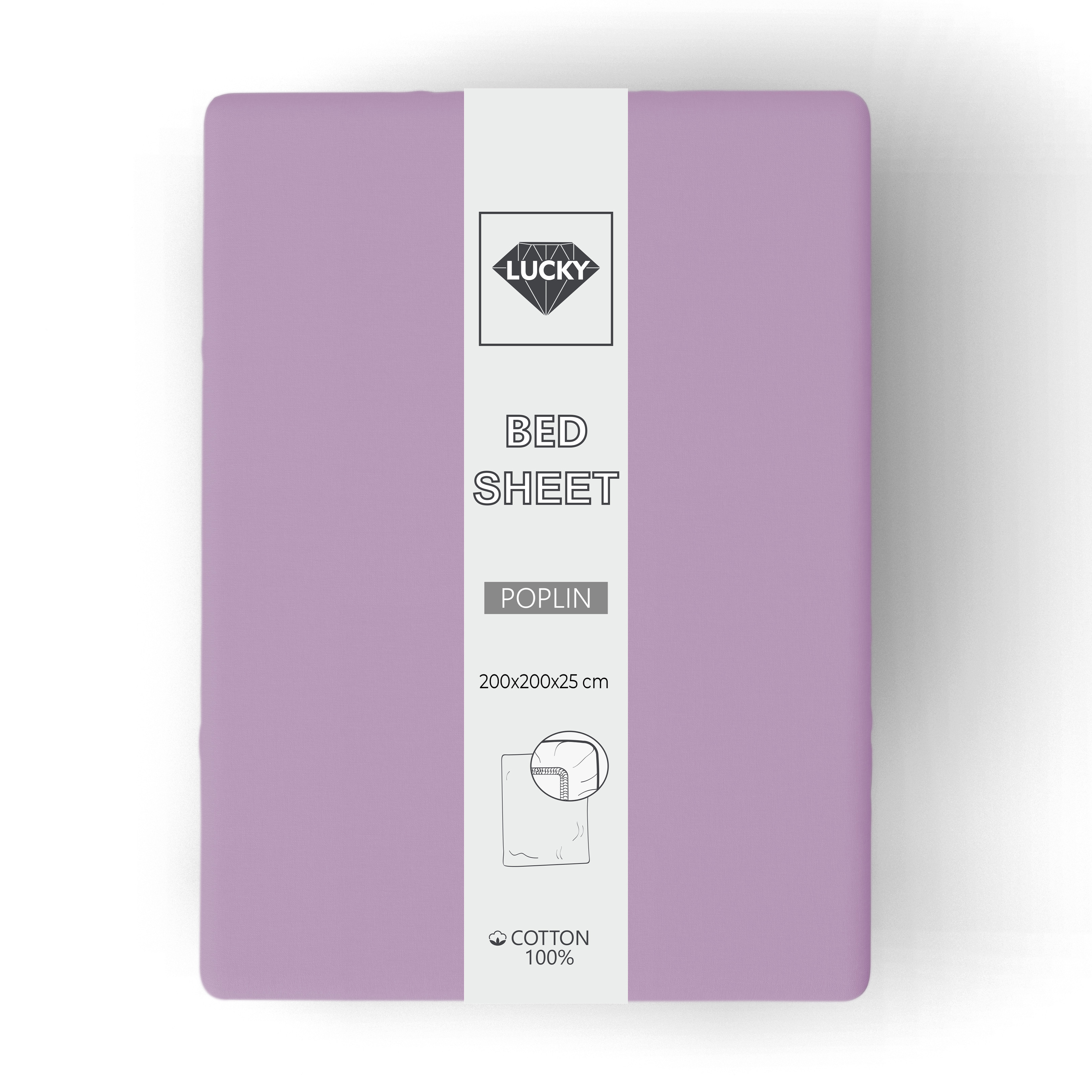 Простыня на резинке 200х200х25см LUCKY розовая поплин хлопок 100%