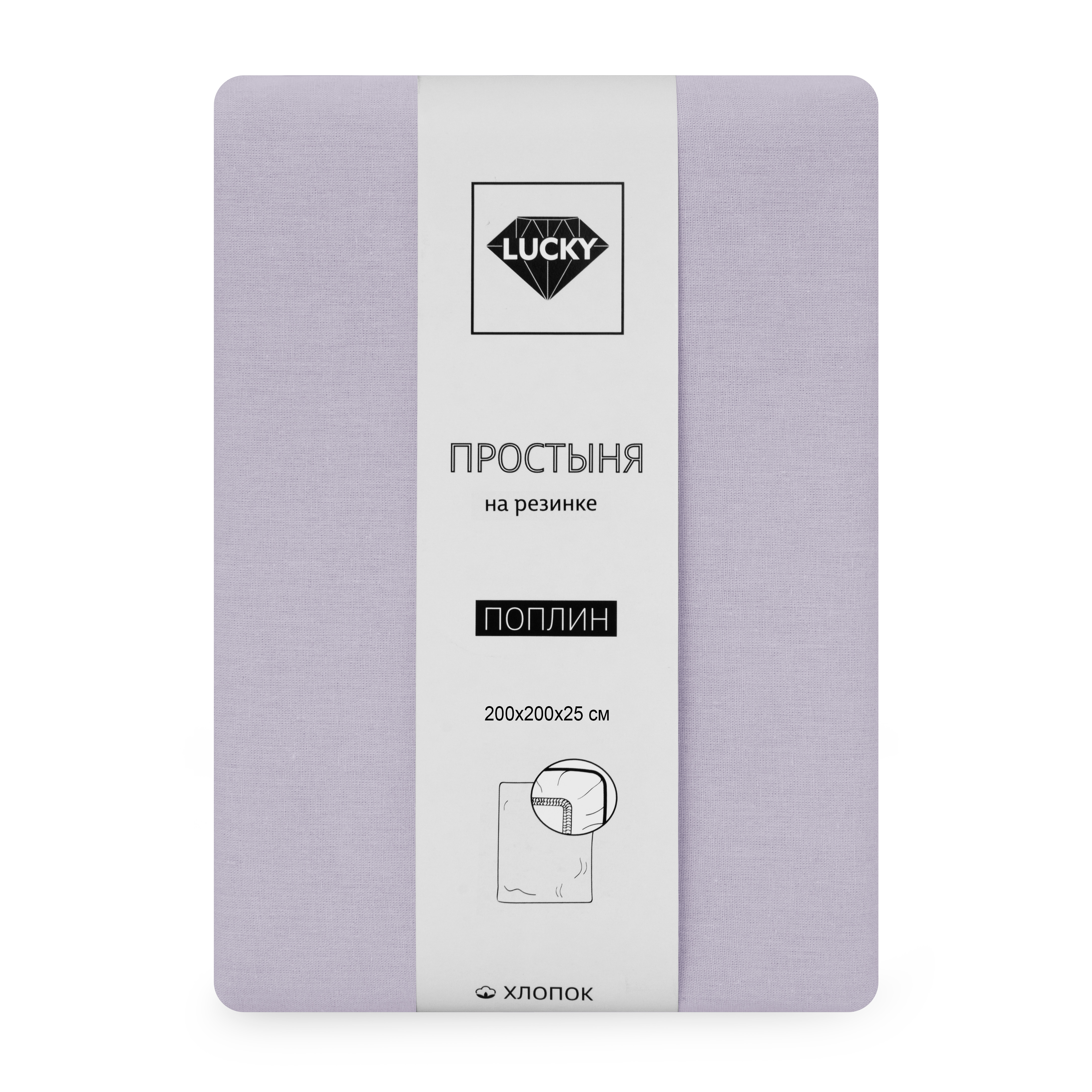 Простыня на резинке 200х200х25см LUCKY лавандовый поплин хлопок 100%