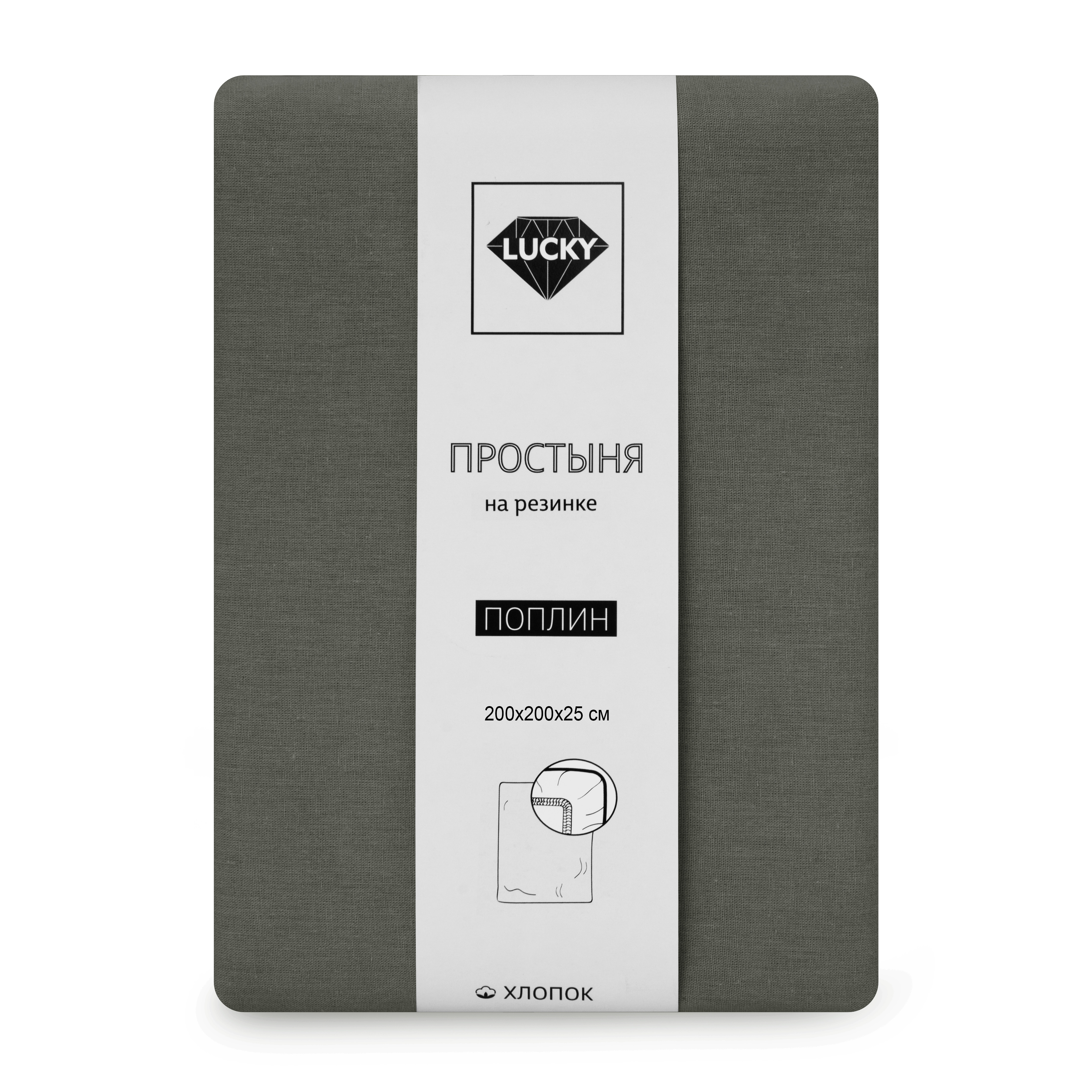 Простыня на резинке 200х200х25см LUCKY темно-серый поплин хлопок 100%