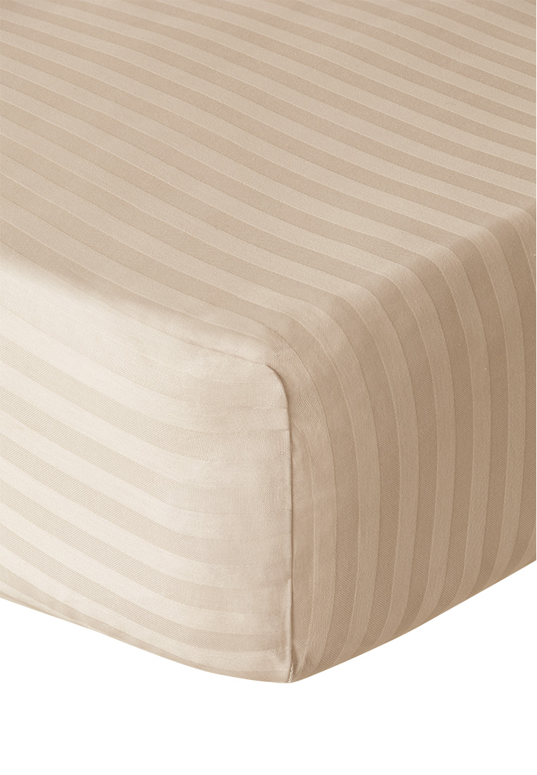 Проcтыня на резинке 200х200+25см DE'NASTIA бежевая сатин-страйп хлопок100%