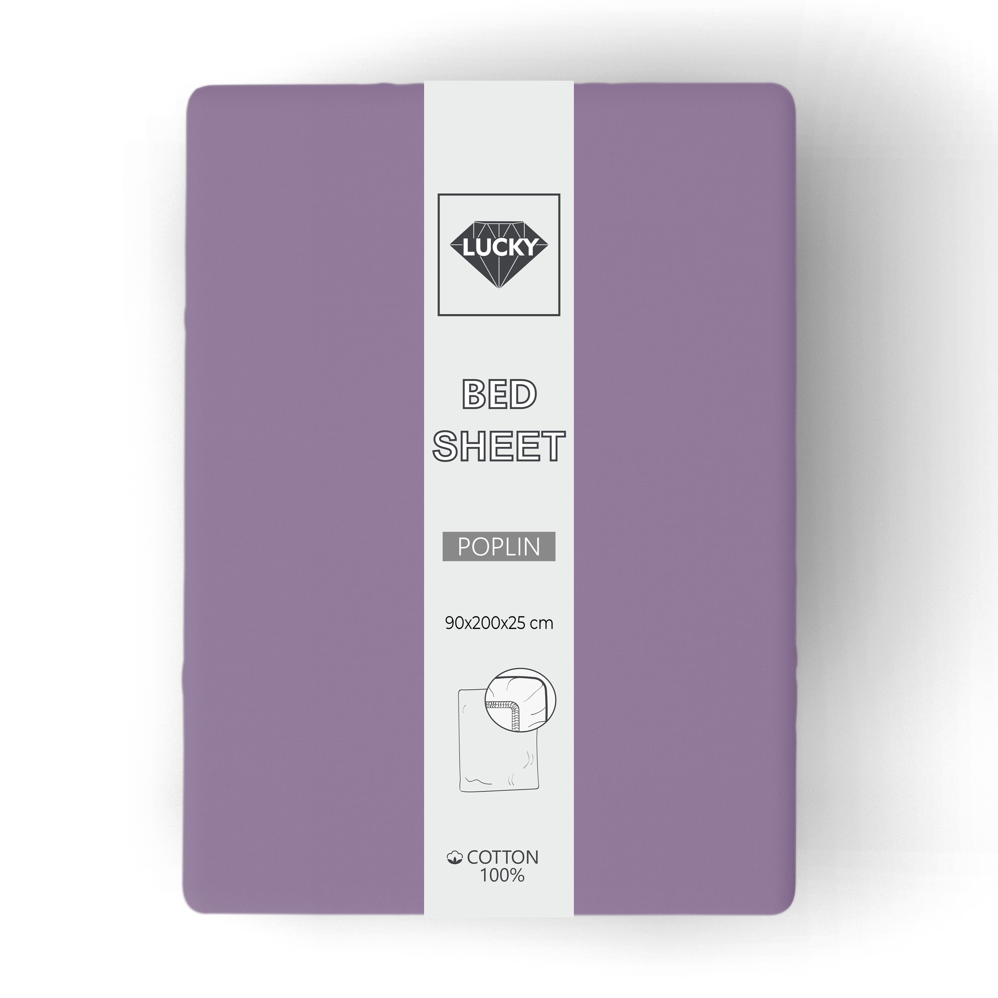Простыня на резинке 90х200х25см LUCKY сиреневая/лиловая поплин хлопок 100%
