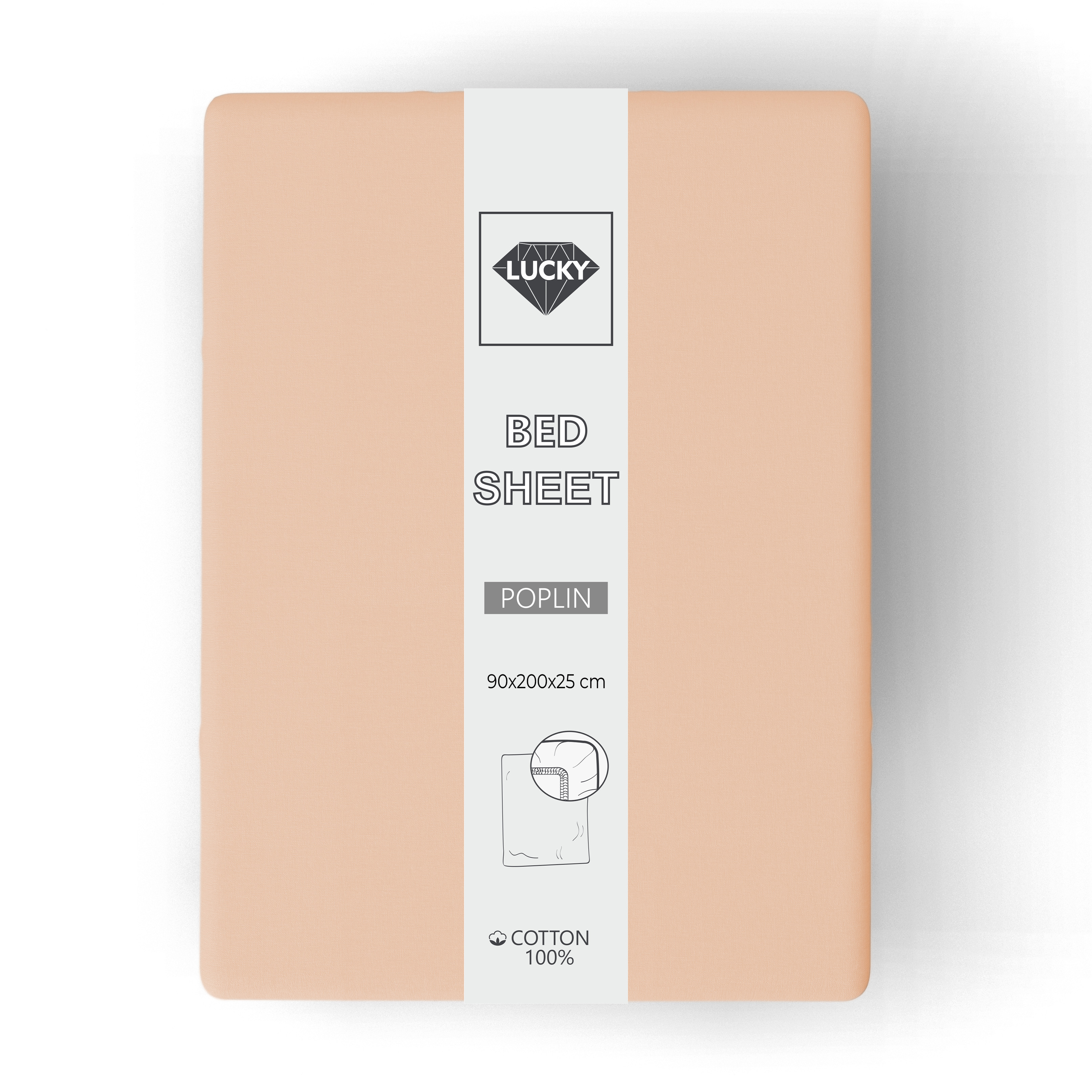Простыня на резинке 90х200х25см LUCKY персиковая поплин хлопок 100%