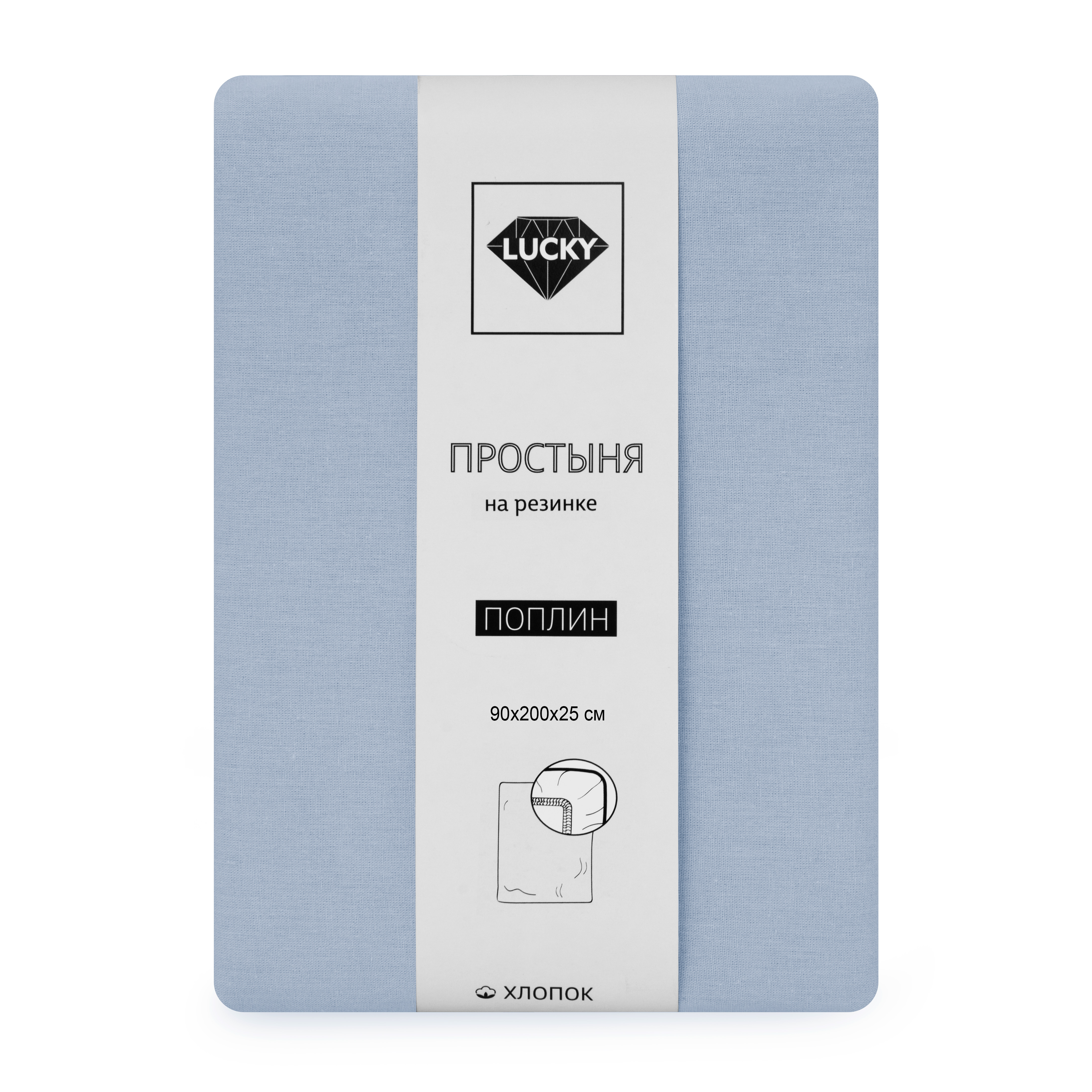 Простыня на резинке 90х200х25см LUCKY серо-голубая поплин хлопок 100%