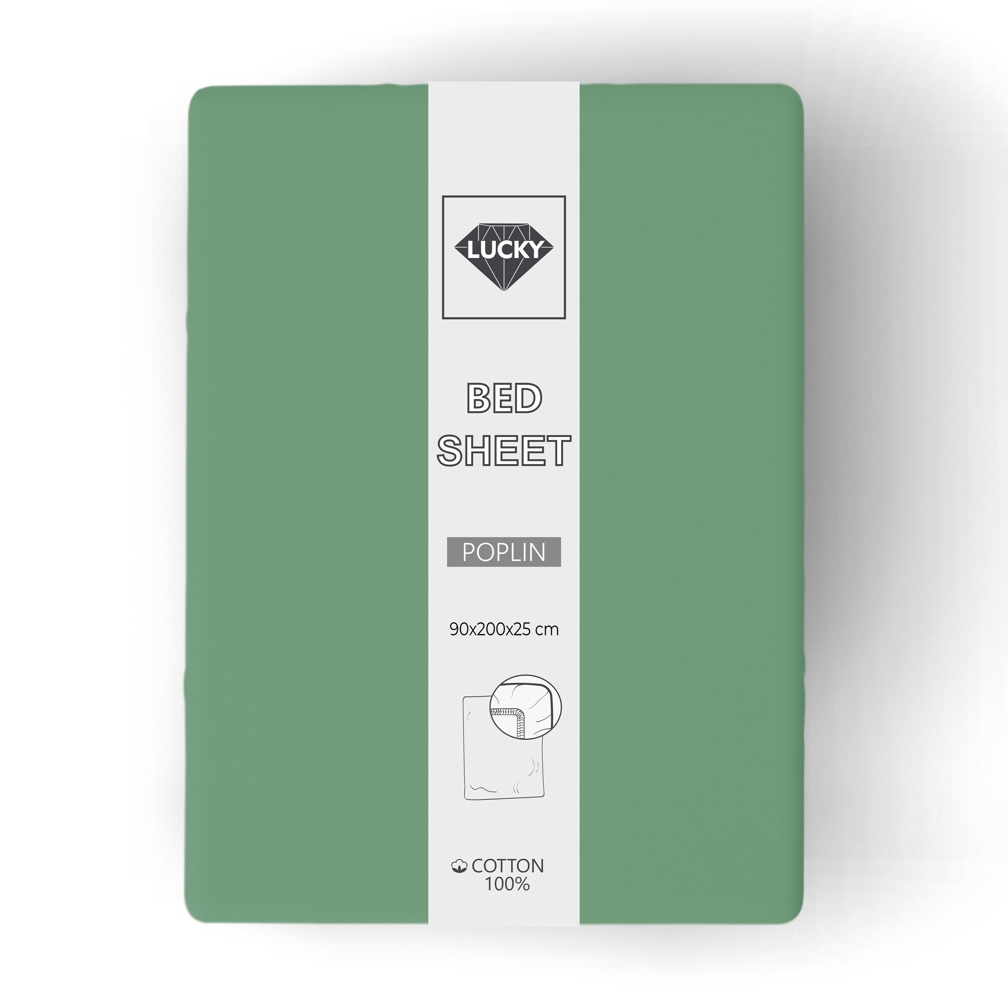 Простыня на резинке 90х200х25см LUCKY зеленая поплин хлопок 100%