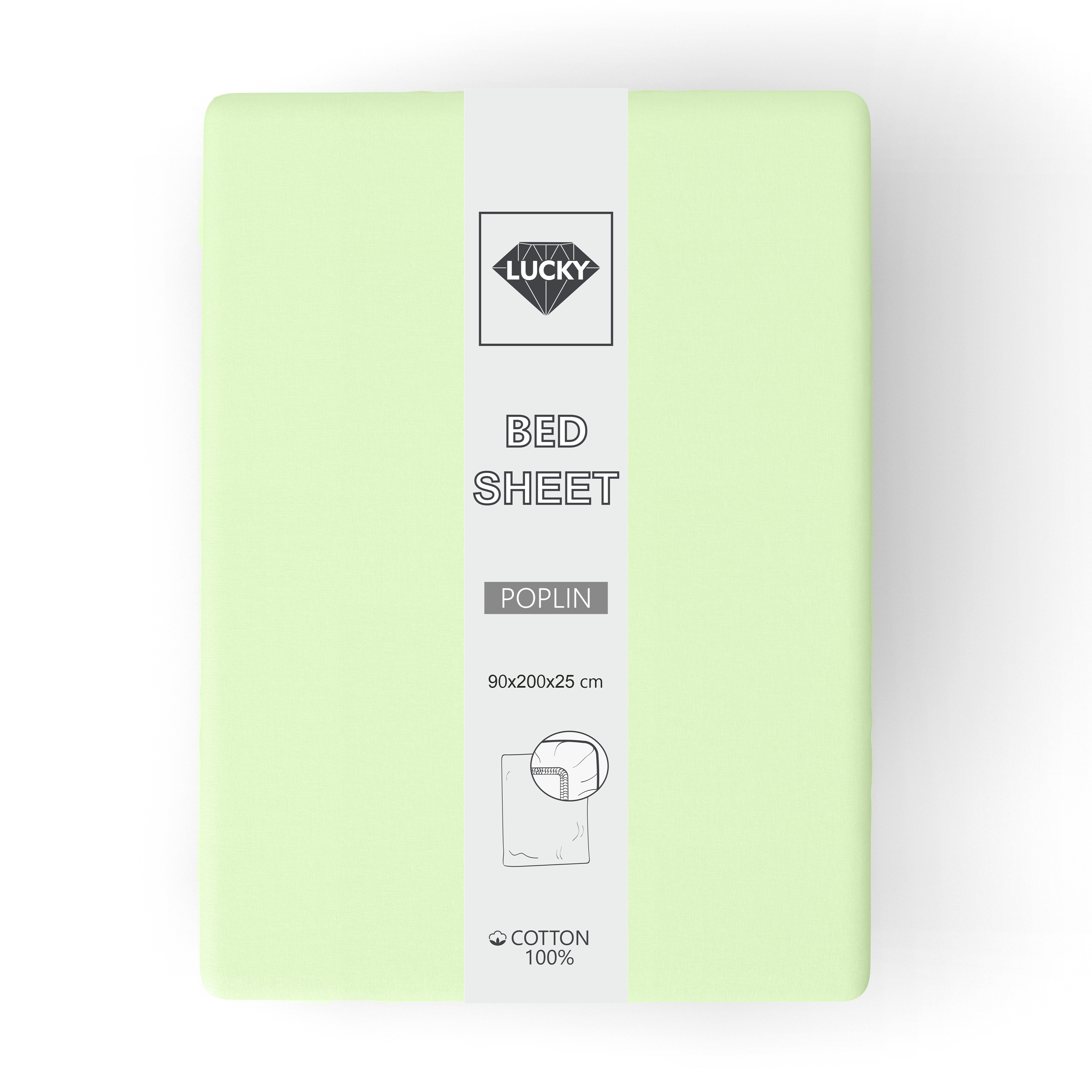 Простыня на резинке 90х200х25см LUCKY светло-зеленая поплин хлопок 100%