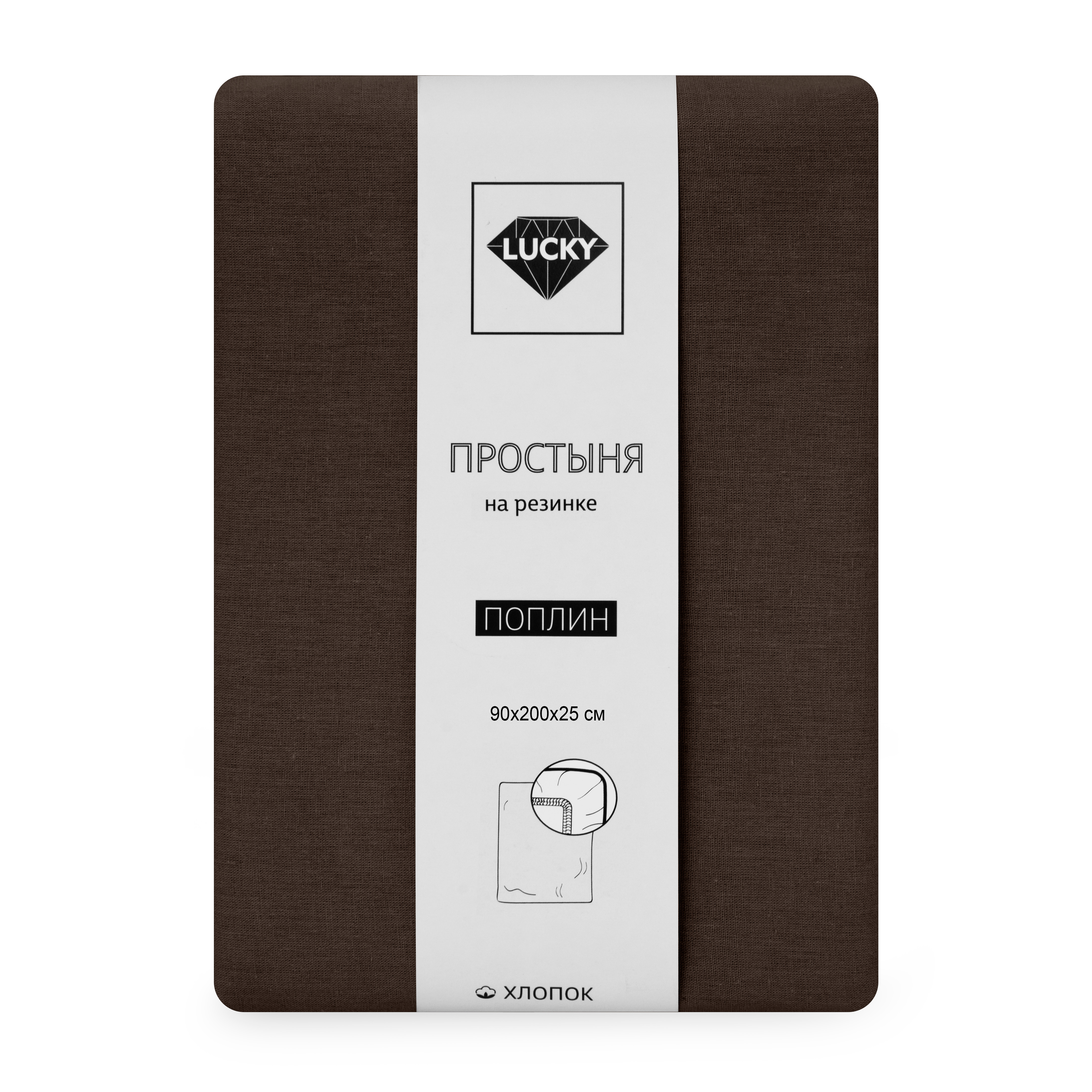 Простыня на резинке 90х200х25см LUCKY шоколад поплин хлопок 100%