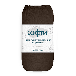 Простыня трикотажная на резинке 90х200х20см СОФТИ шоколад хлопок 100%