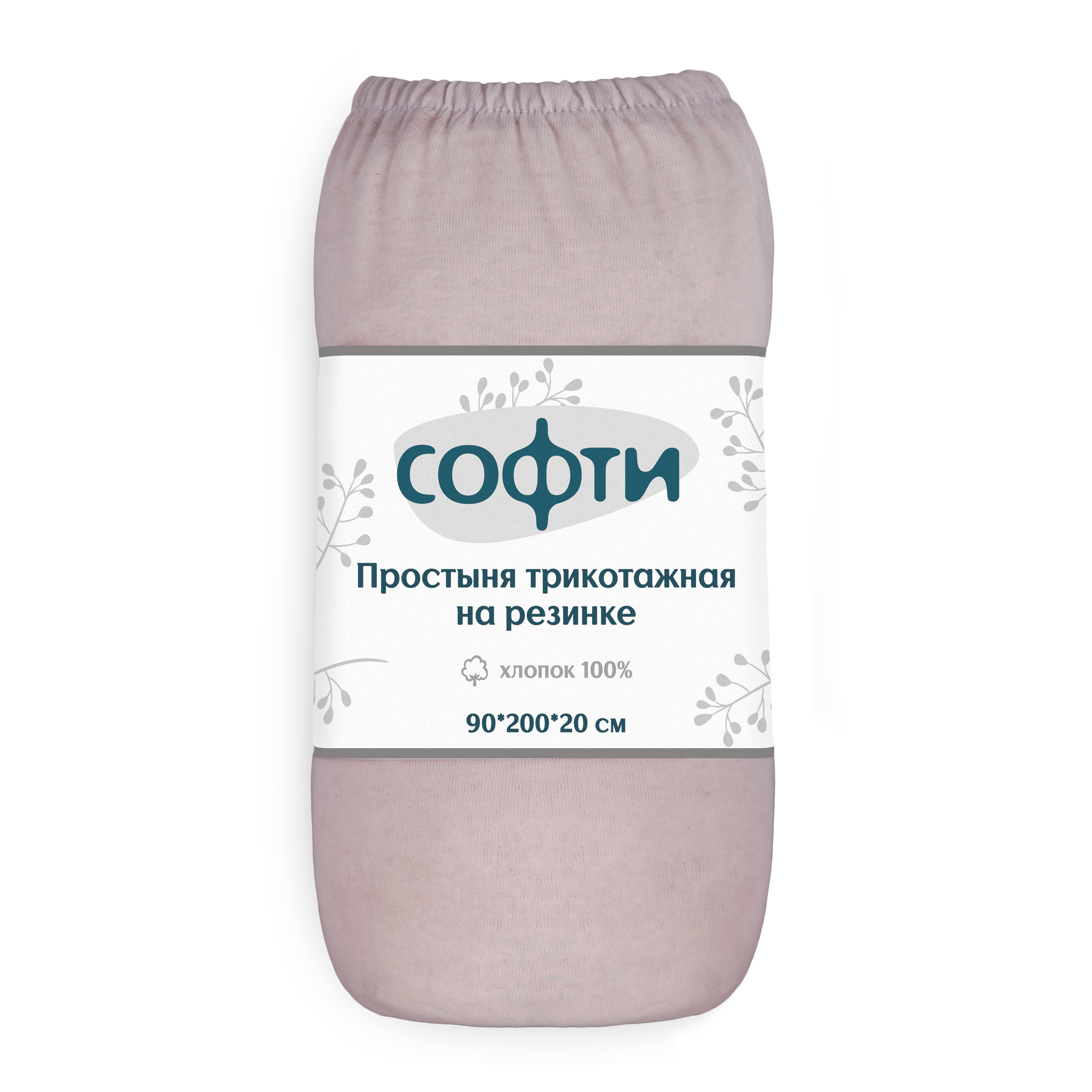 Простыня трикотажная на резинке 90х200х20см СОФТИ розовая хлопок 100%