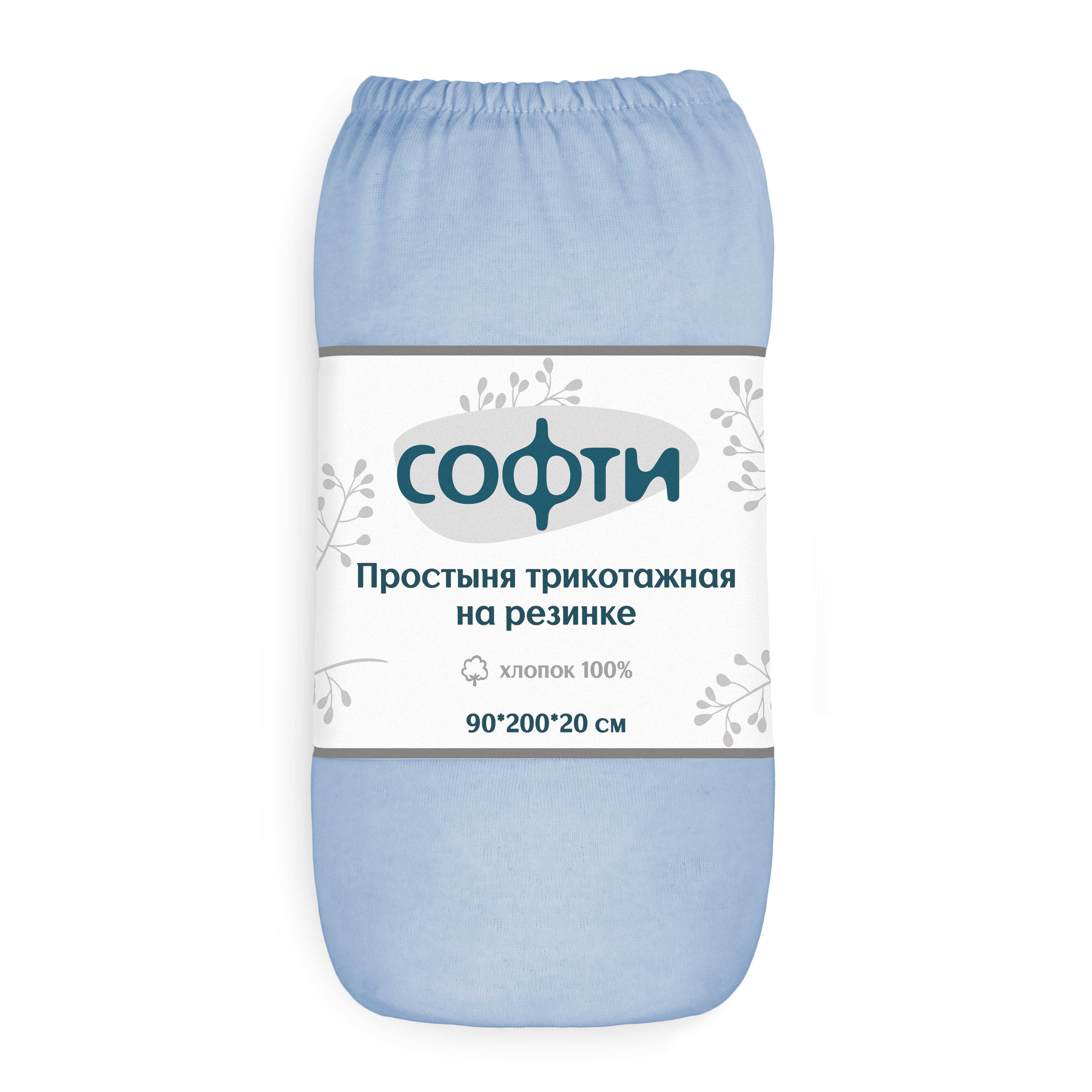 Простыня трикотажная на резинке 90х200х20см СОФТИ серо-голубая хлопок 100%