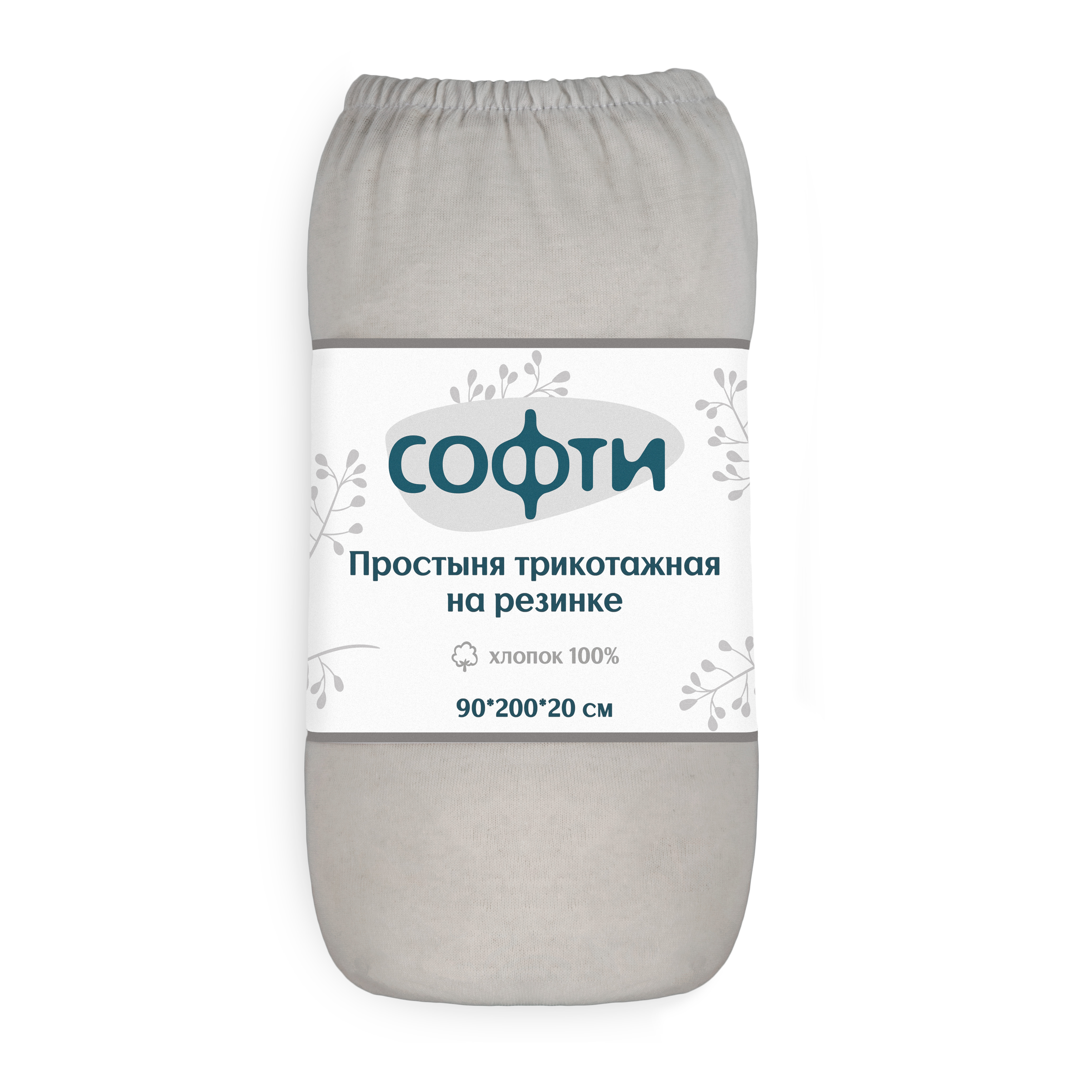 Простыня трикотажная на резинке 90х200х20см СОФТИ светло-серая хлопок 100%