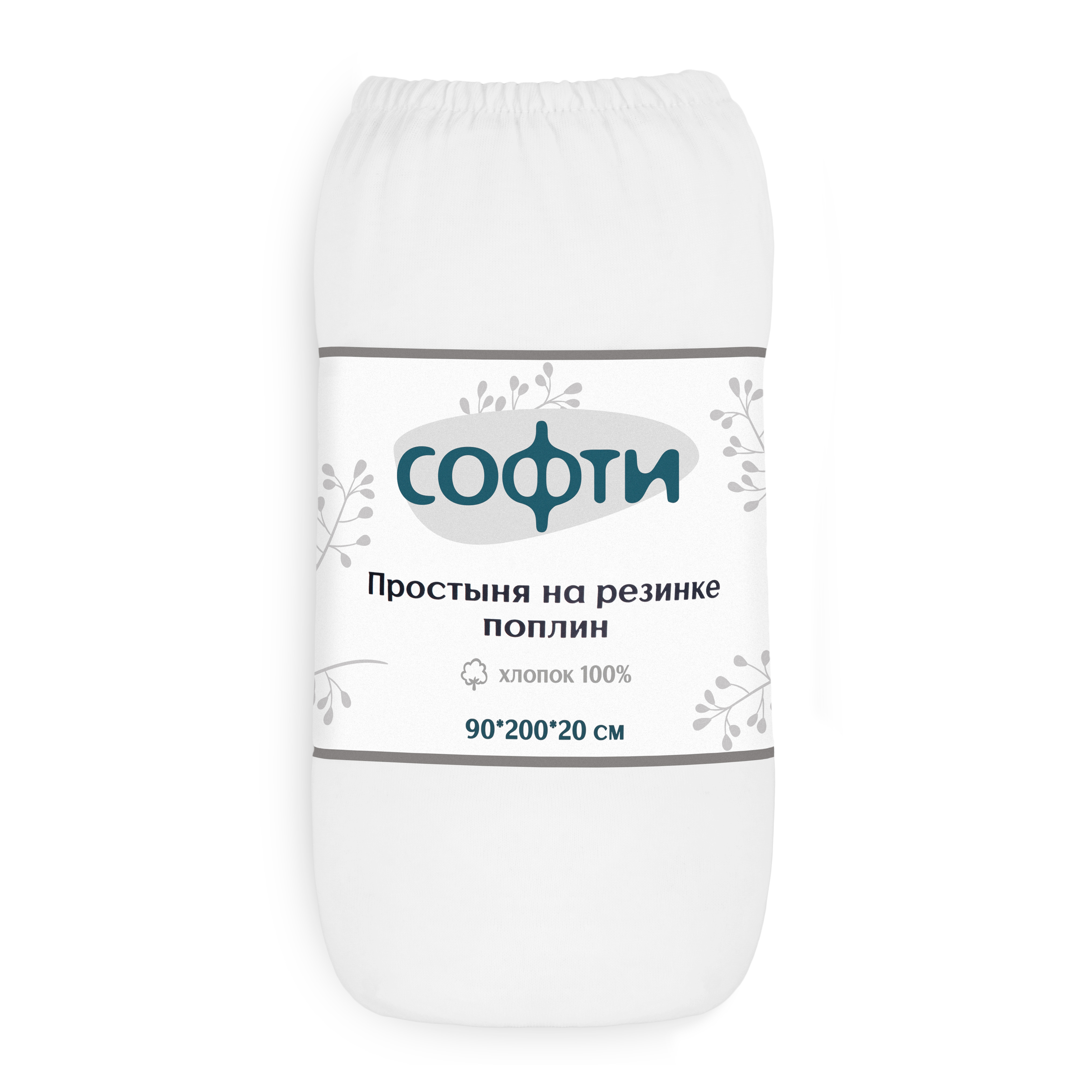 Простыня на резинке 90х200х25см СОФТИ белая поплин хлопок 100%