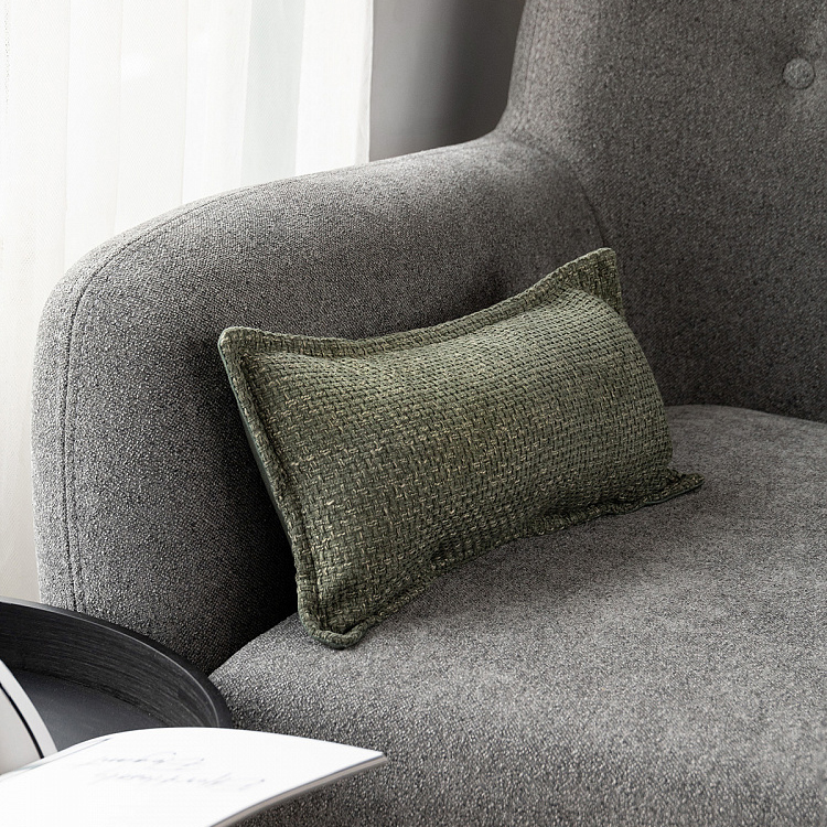 Подушка декоративная 20х40см DE'NASTIA на молнии зеленый шенилл меланж полиэстер