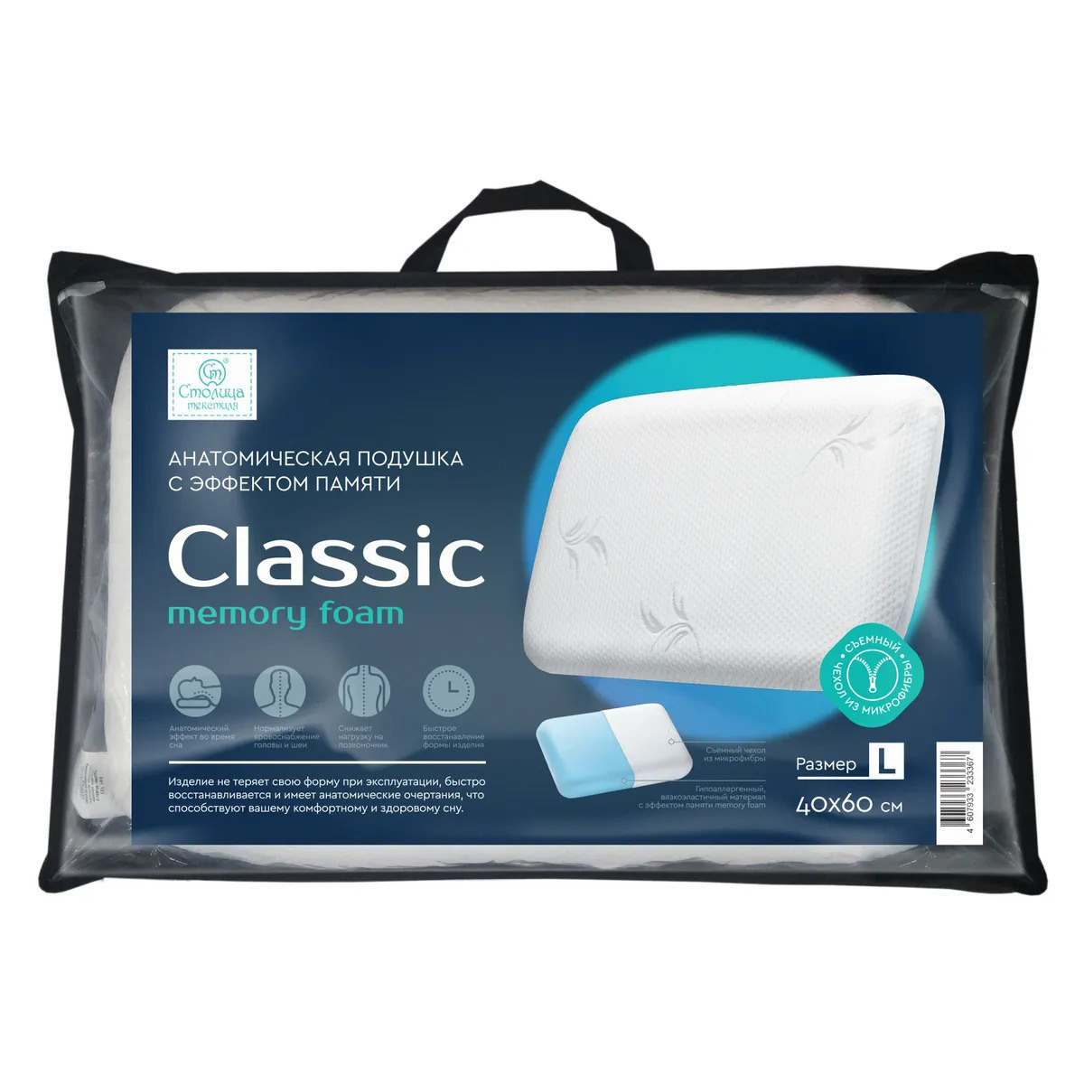 Подушка анатомическая 40х60см СТОЛИЦА ТЕКСТИЛЯ ORIGINAL 220г микрофибра полиэстер/пенополиуретан