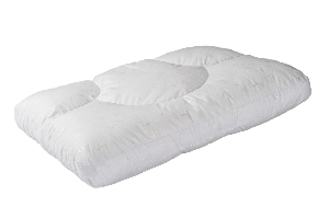 Подушка ПСС 5 (45х65) изготавливается из тика (50% Полиэстер 50% Хлопок) и наполняется микро - волокном (ПЭ3d64). Особенность подушки состоит в том, что центральная часть изделия снабжена тремя внутренними перегородками, одна из которых служит валиком под шею, две других огораживают зону комфорта при лежании на спине. Конструктивно, высота подушки 13 см., высота перегородок 8 см., сжимая центральную часть изделия, перегородками мы создаем возможность для универсального пользования подушкой. На подушке можно отдыхать как располагая валик под шеей, так и развернув её на 180 гр.. Перегородки не дают смещаться волокну внутри подушки, что позволяет изделию сохранять первоначально заданную форму. На боковых частях подушки вставлена дополнительная деталь, предназначение которой – увеличить объём левой и правой частей подушки, что обеспечивает физиологические расстояния от головы до поверхности лежания в положении на боку. Края подушки скруглены, это предотвращает появление пустот по периметру изделия.