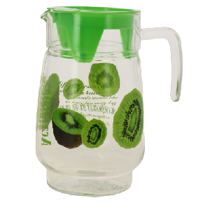 Кувшин Киви выполнен из стекла, имеет прозрачные стенки, благодаря которым видно содержимое в нем. Прочная ручка и крышка делают кувшин незаменимым помощником на кухне для хранения напитков. Объем 1,5л.