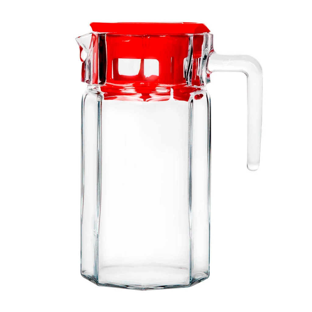 KOSEM Кувшин 1л PASABAHCE красная крышка стекло 80051RSL