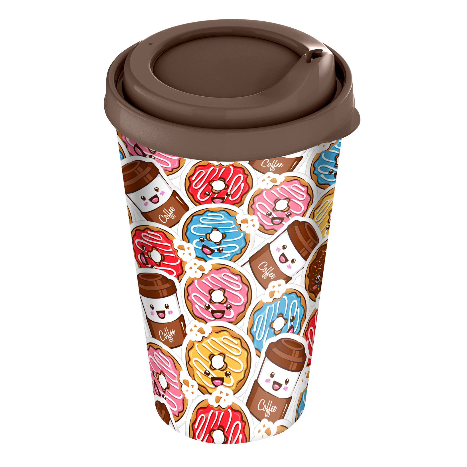 Стакан 550мл IDILAND IZI-GO с крышкой с декором в ассортименте темно-коричневый пластик