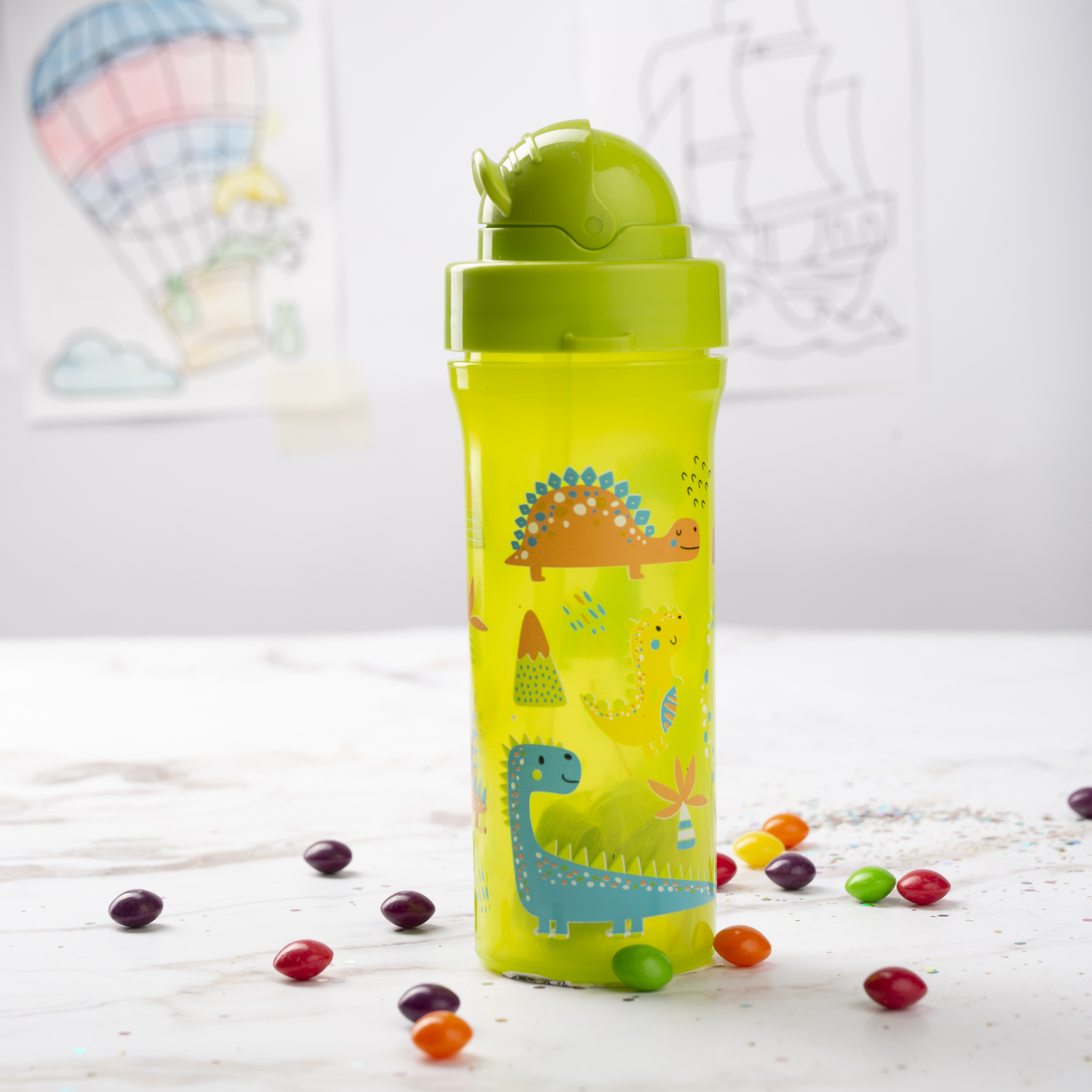 Бутылка для напитков 300мл RENGA с крышкой и трубочкой декор полипропилен/силикон