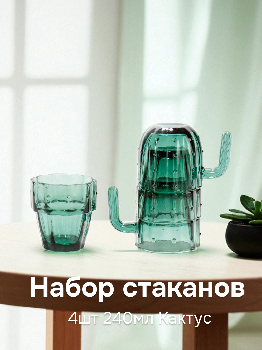 Набор стаканов 4шт 240мл Кактус зеленый стекло