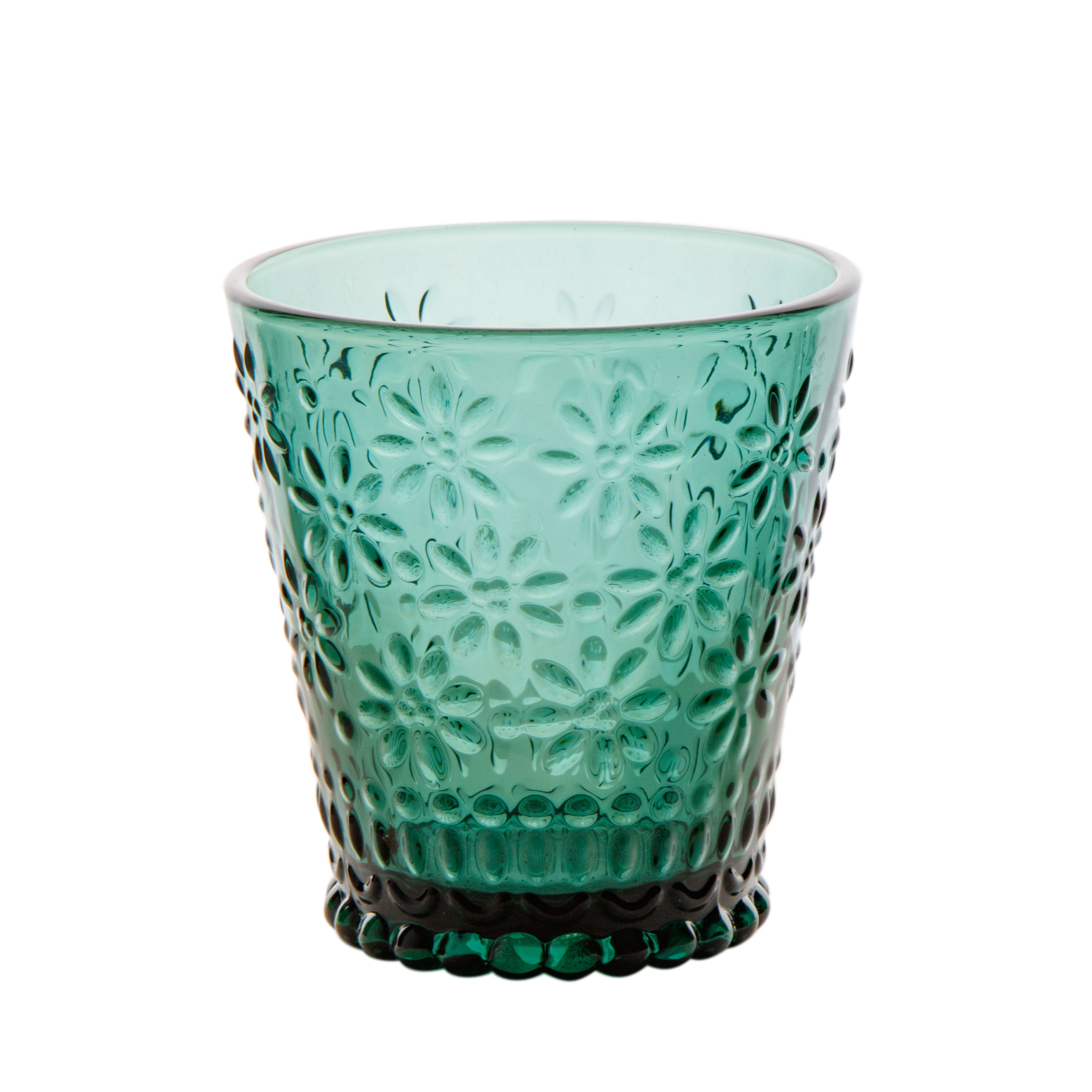 Набор стаканов для воды 2шт 295мл GARBO GLASS Цветочки зеленое стекло