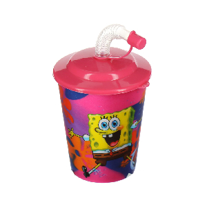 3D Бокал с крышкой и трубочкой Губка Боб, розовый, 400мл