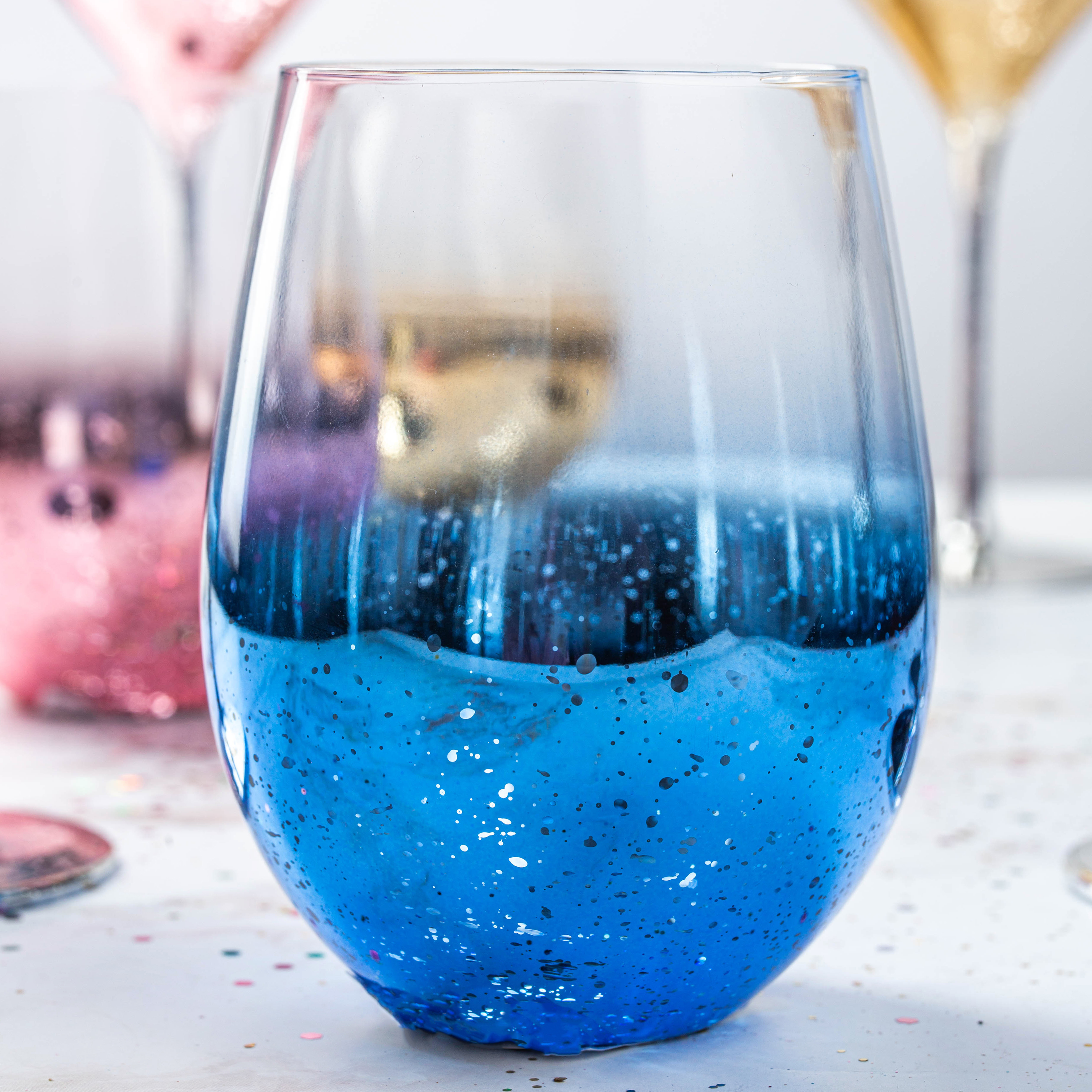 Стакан 550мл LUCKY напыление звездное небо голубой стекло