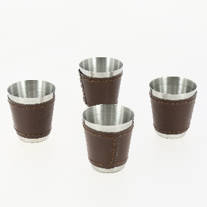 Набор рюмок 4шт х 30мл рюмка7х4см искусственная кожа нержавеющая сталь