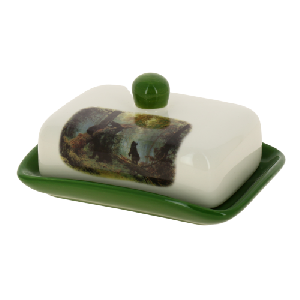 Масленка серии "Утро в сосновом лесу" выполнена из доломита и украшена легендарным сюжетом одноименной картины "Утро в сосновом лесу". Удобная крышечка поможет сохранить вкус и консистенцию масла.