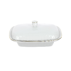 Масленка марки Polskie Fabryki Porcelany впишется в интерьер кухни или столовой в классическом стиле. Изящное изделие, декорированное золотой окантовкой, украсит сервировку торжественного застолья и послужит элегантным элементом декора. Масленка из упрочненного фарфора прослужит долго, сохранив первоначальный внешний вид. Посуду не рекомендуется использовать в СВЧ-печи и мыть в посудомоечной машине. Масленка с крышкой станет хорошим приобретением для дома или послужит приятным подарком.