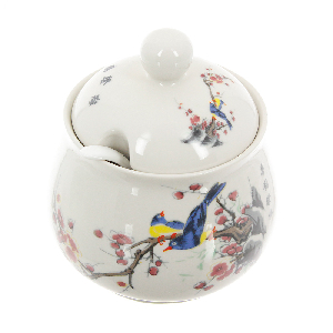 Российская марка Tima производит уникальную по своим характеристикам посуду из современных материалов, разумную по соотношению цена-качество. Сахарница марки Tima предназначена для удобного хранения и использования сахарного песка. Она выполнен из экологичного фарфора, не впитывает посторонние запахи и влагу, не выделяет вредных веществ и прост в уходе. Сахарница дополнена фарфоровой мерной ложечкой. Корпус и крышка изделия украшены изящным рисунком. Классический дизайн фарфоровой сахарницы сочетает в себе изысканную простоту и элегантность. Фарфоровая сахарница уместна на любой кухне и станет практичным подарком друзьям и близким.