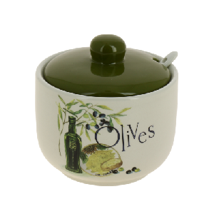 Великолепная сахарница Оливки, выполненная из высококачественной керамики (доломит), оформлена ярким изображением. К сахарнице прилагается крышка и оригинальная ложка. Сахарница универсальна, подойдет не только для сахара, но и для меда, варенья, и для специй. Эксклюзивный дизайн и функциональность сахарницы сделает ее незаменимой на любой кухне. Объем сахарницы: 430 мл.