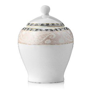 Сахарница 350 мл из костяного фарфора. Конусообразная форма изделия. Рисунок Пейсли. Цвет розовый. Разрешено использовать в посудомоечной машине и в микроволновой печи. Гарантия 1,5 года.
