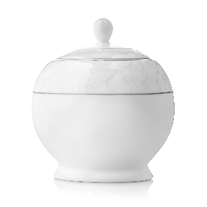 Сахарница 500 мл из костяного фарфора. Форма круглая. Рисунок Завитки. Цвет серебро. Разрешено использовать в посудомоечной машине и в микроволновой печи. Гарантия 1,5 года.
