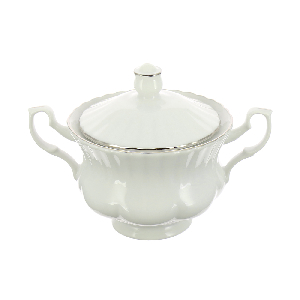 Сахарница марки Polskie Fabryki Porcelany впишется в интерьер кухни или столовой в классическом стиле. Изящное изделие, декорированное платиновой окантовкой, украсит сервировку торжественного застолья и послужит элегантным элементом декора. Сахарница из упрочненного фарфора прослужит долго, сохранив первоначальный внешний вид. Посуду не рекомендуется использовать в СВЧ-печи и мыть в посудомоечной машине. Такая сахарница станет хорошим приобретением для дома или послужит приятным подарком.