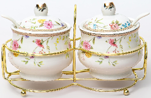 Набор сахарниц 2шт Balsford ТЕОДОРА с ложками на металлической подставке подарочная упаковка фарфор 173-42027