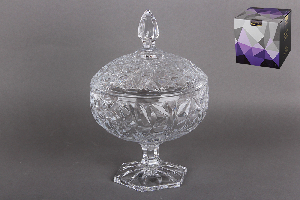 Ваза с крышкой на ножке 16см гранение стекло DSTG1040