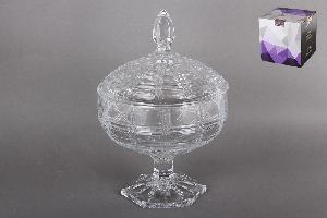 Ваза с крышкой на ножке 16см гранение стекло DSTG1041