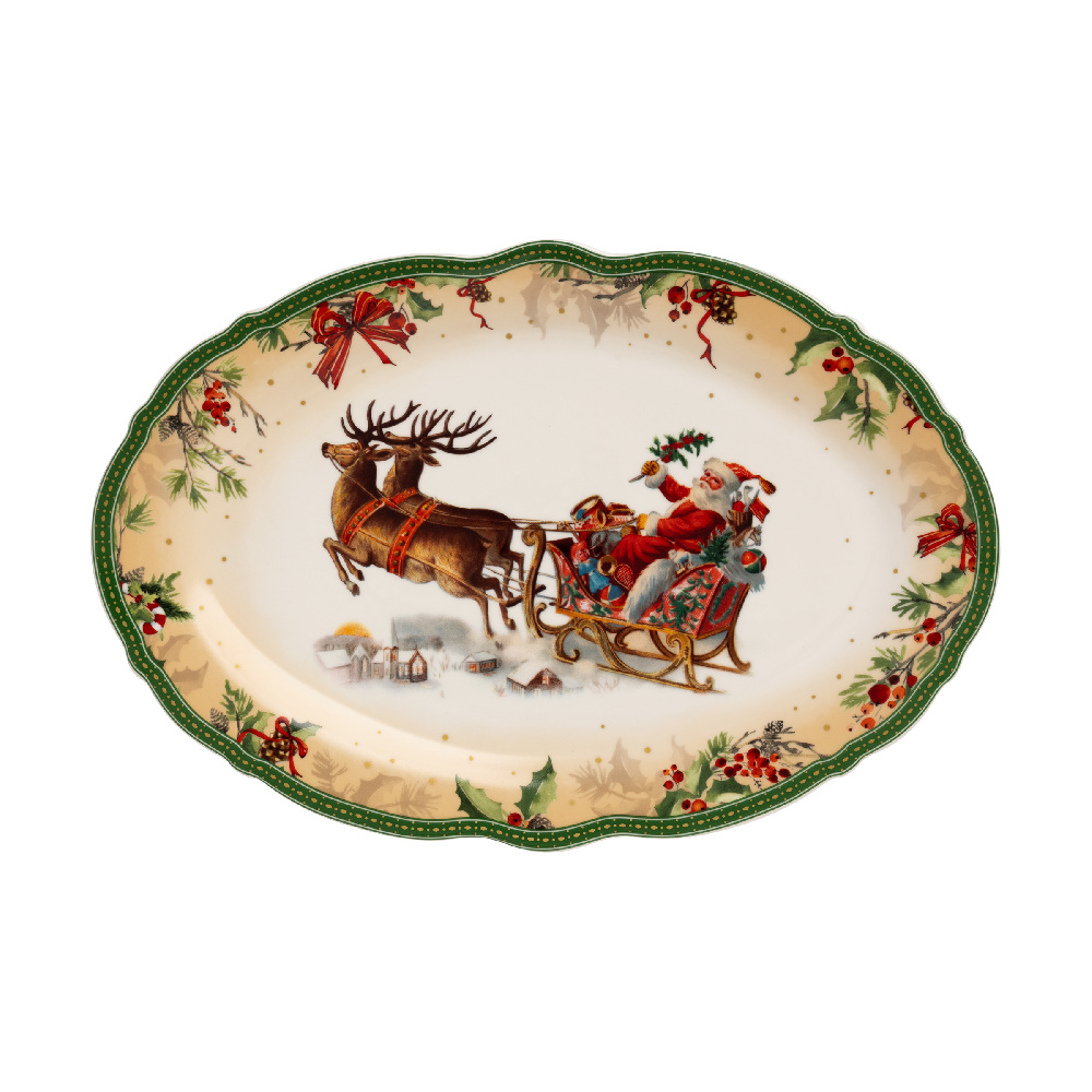Блюдо овальное DE'NASTIA Новый год белый/зеленый фарфор