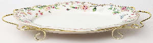 СТЕФАНИЯ, блюдо овальное 305мм на метал.подставке, NEW BONE CHINA, цветная упаковка
