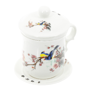 Кружка с блюдцем и ситом Птицы на ветке ТимА