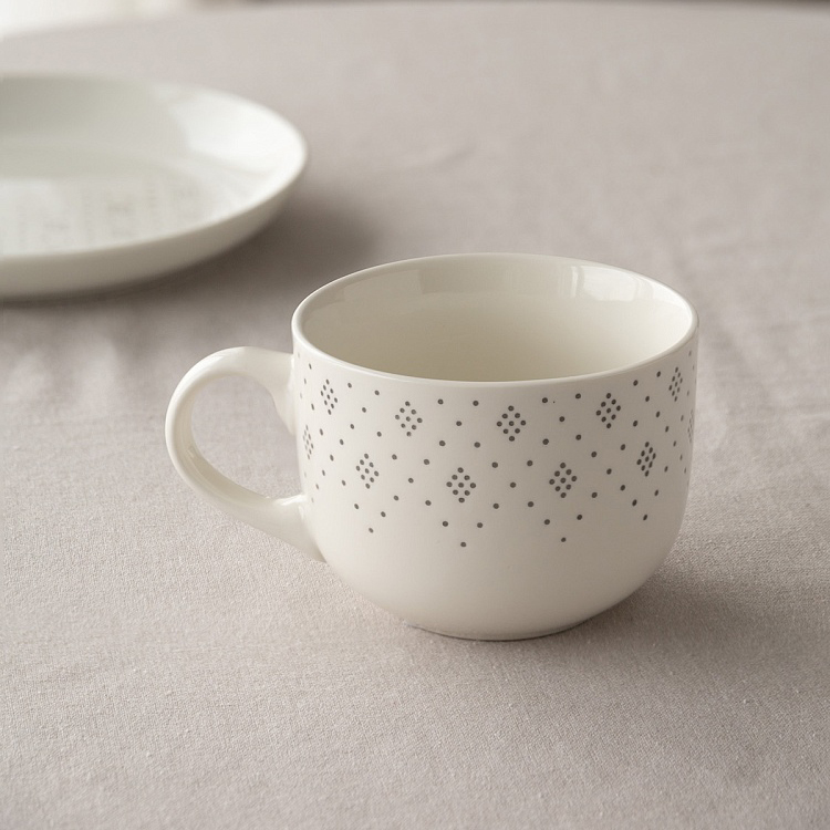 Кружка 450мл, DE'NASTIA Ромбы из точек белый фарфор