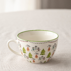 Кружка 395мл LUCKY Новый год Ели зеленая кайма белый фарфор