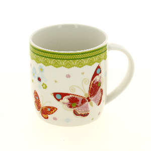 Кружка Бабочки объёмом 300мл выполнена из высококачественного фаянса стойкого к запахам. Форма кружки – бочка. Нежно-белая поверхность кружки оформлена красочным и долговечным изображением. Такая кружка станет отличным дополнением к сервировке семейного стола и вашим верным боевым другом в офисе. Из такой посуды пить горячий чай дома и на работе особенно приятно! Наполните свой мир яркими красками! Можно использовать в СВЧ-печи и мыть в посудомоечной машине.