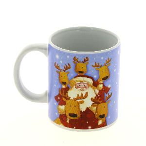 Кружка Санта и олени, украшенная ярким новогодним рисунком, придется по душе любителям броских расцветок и говорящих принтов. Легкая и вместительная кружка с удобной ручкой подойдет как для чаепития, так и для всех видов некрепкого кофе. Кружка, изготовленная из высококачественного фаянса, надолго сохранит первоначальный вид и яркость красок. Кружку можно мыть в посудомоечной машине. Такая кружка станет приятным знаком внимания для друзей и знакомых.